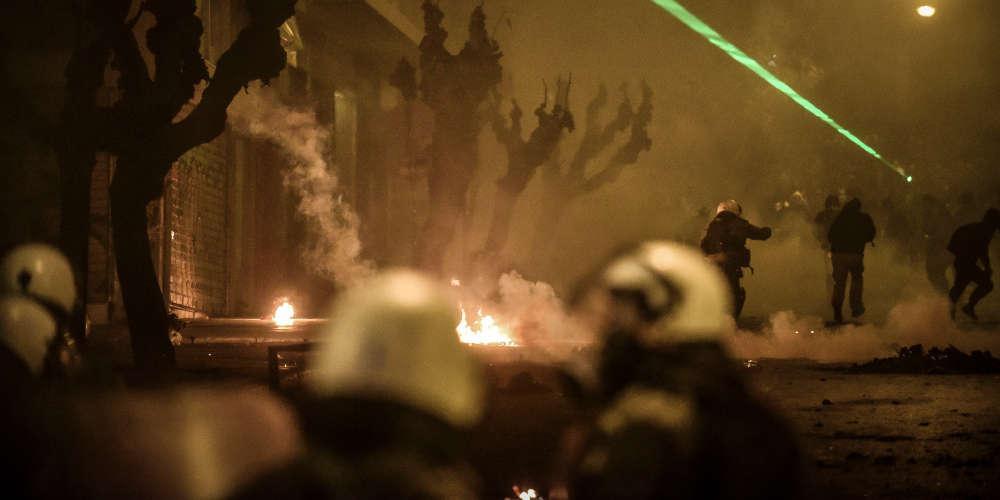 Tα επεισόδια ξεκίνησαν λίγο μετά τις 20:00, αφότου η πορεία έφτασε στη συμβολή των οδών Μεσολογγίου και Τζαβέλα, όπου δολοφονήθηκε το 2008 ο Αλέξης Γρηγορόπουλος. Μία ομάδα που βρισκόταν από νωρίς στην πλατεία Εξαρχείων έβαλε φωτιές σε κάδους και στη συνέχεια κατέβηκε στην οδό Στουρνάρη, όπου επιτέθηκε στη διμοιρία των ΜΑΤ που βρίσκεται στο σημείο εκείνο.