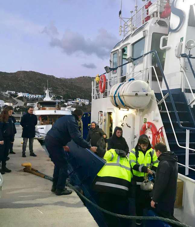 Οι διασωθέντες μετεπιβιβάστηκαν στο Ρ/Κ «ΧΡΗΣΤΟΣ XL» Ν.Π. 11723 και ακολούθως μεταφέρθηκαν στο νέο λιμάνι Μυκόνου για τυχόν παροχή πρώτων βοηθειών.