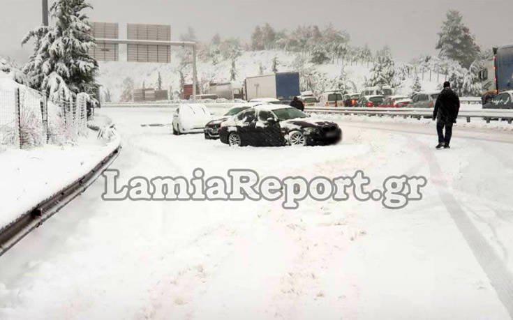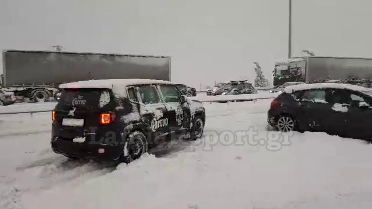 Υπενθυμίζεται ότι το βράδυ της Παρασκευής μία νταλίκα δίπλωσε στο ρεύμα προς Λαμία, ενώ ένα λεωφορείο και μια νταλίκα που δεν διέθεταν αντιολισθητικές αλυσίδες ακινητοποιήθηκαν στο αντίθετο ρεύμα προς Αθήνα, με αποτέλεσμα πολλοί οδηγοί και επιβάτες οχημάτων να συμπληρώσουν πάνω από 7 ώρες ταλαιπωρίας εγκλωβισμένοι στα χιόνια.