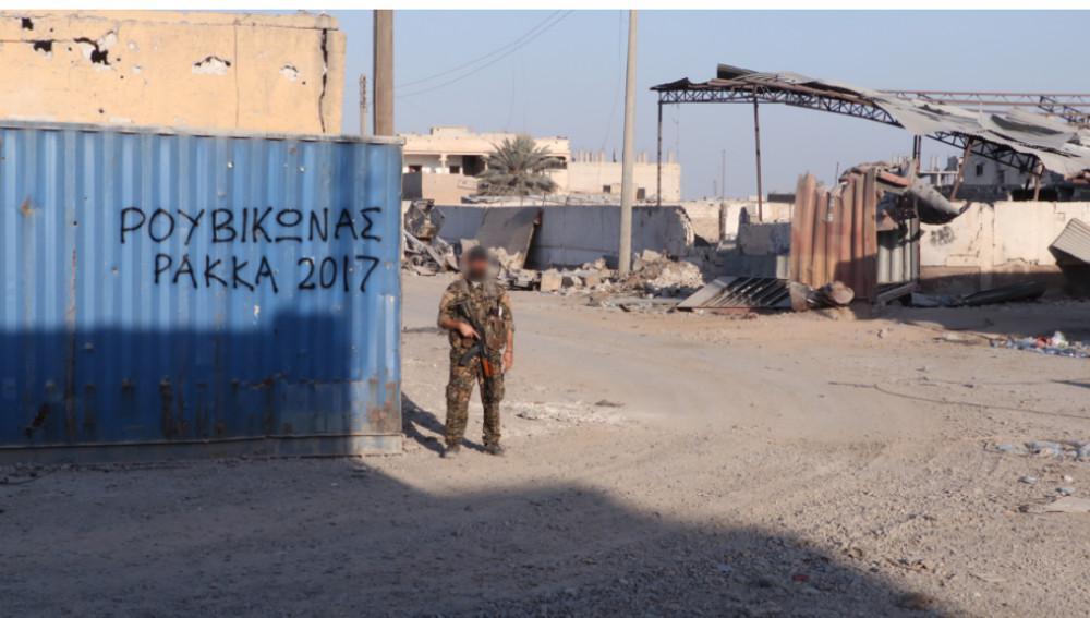 Η ανακοίνωση κάνει αναφορά και στη δράση του μέλους του Ρουβίκωνα στην περιοχή, σημειώνοντας πως «βρέθηκε στην γραμμή του μετώπου από την αρχή ως το τέλος της απελευθέρωσης της Ράκκα από το Ισλαμικό κράτος. Σε ένα περιβάλλον πρωτόγνωρο, ως τοπογραφία, κλίμα, ανθρώπους, πολιτισμούς. Πήρε μέρος σε ένα τακτικό αστικό πόλεμο με όρους Β’ παγκοσμίου πολέμου, έχοντας από την άλλη πλευρά αποφασισμένο και ανορθόδοξο εχθρό».