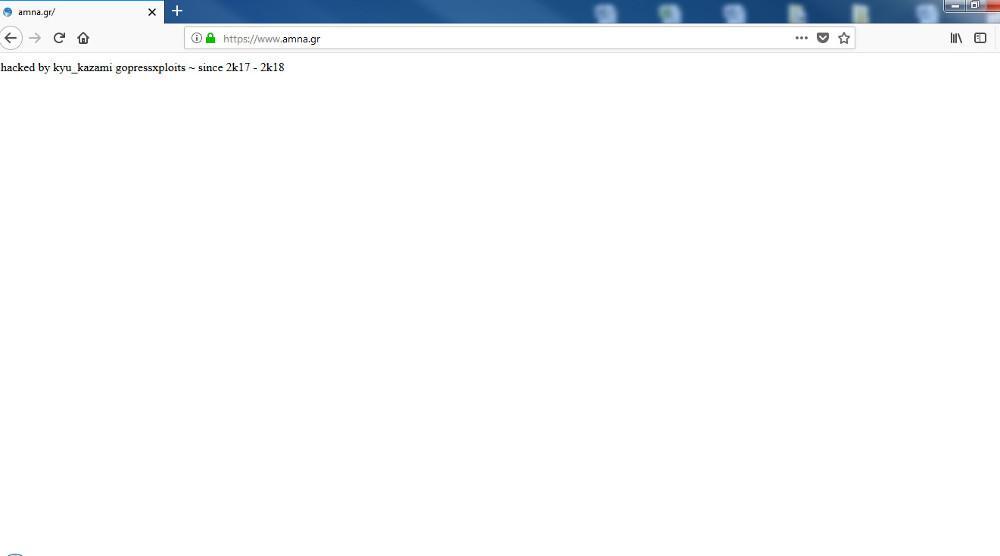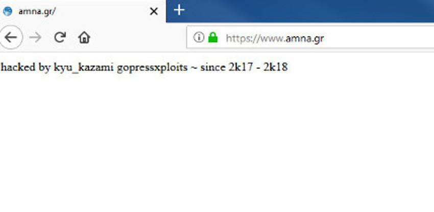 Όταν ένας χρήστης προσπαθεί να μπει στην ιστοσελίδα του ΑΠΕ -ΜΠΕ βλέπει ένα μήνυμα το οποίο γράφει πως: Χακαρίστηκε από τον kyu_kazami gopressxploits ~ since 2k17 – 2k18, με αποτέλεσμα να είναι αδύνατη η πρόσβαση στον ιστότοπο.