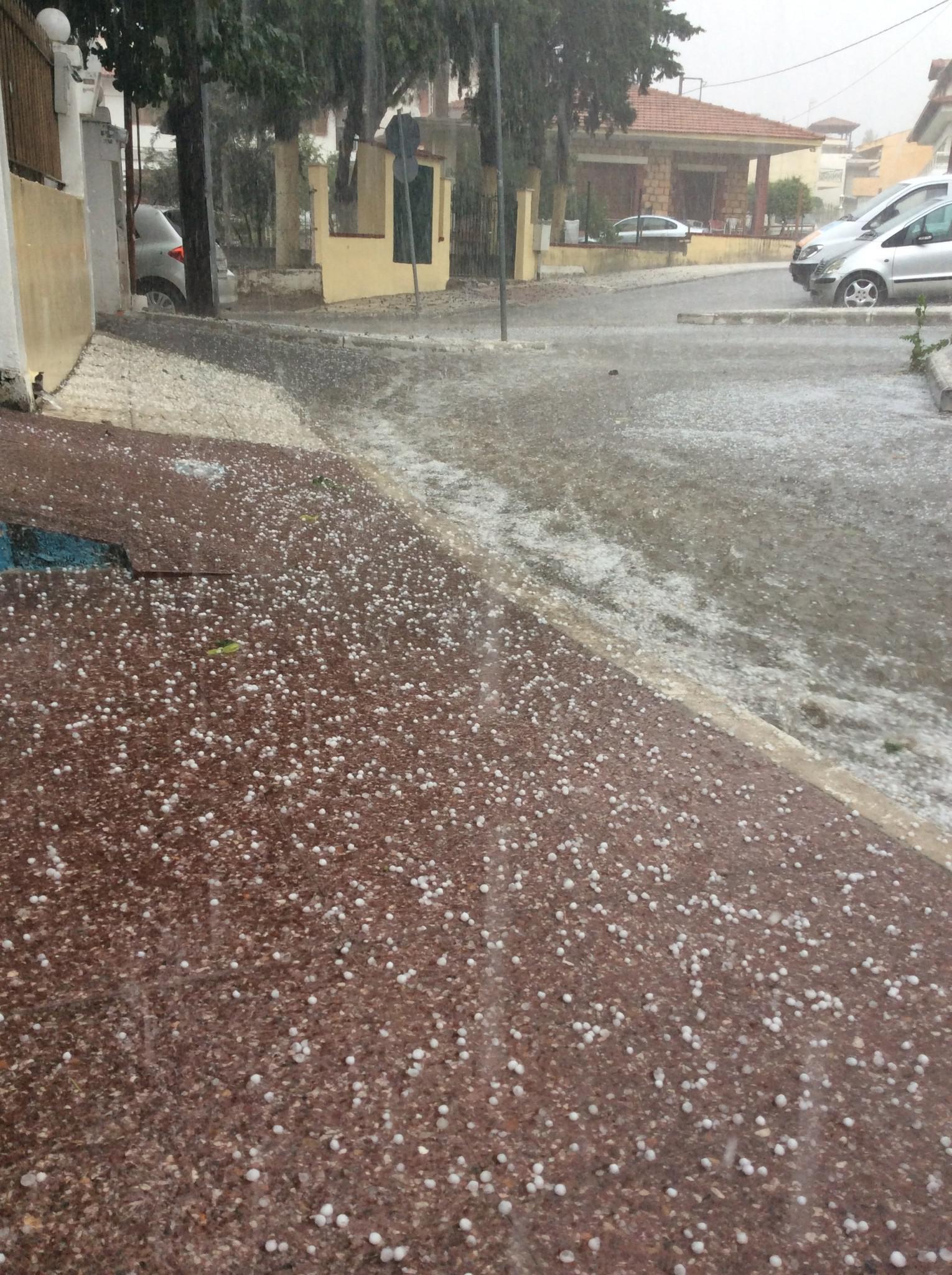 Δυνατή βροχή που συνοδεύονταν και από χαλάζι έπεσε στη Δυτική Θεσσαλονίκη, ενώ στο κέντρο της πόλης έβρεξε ελάχιστα.