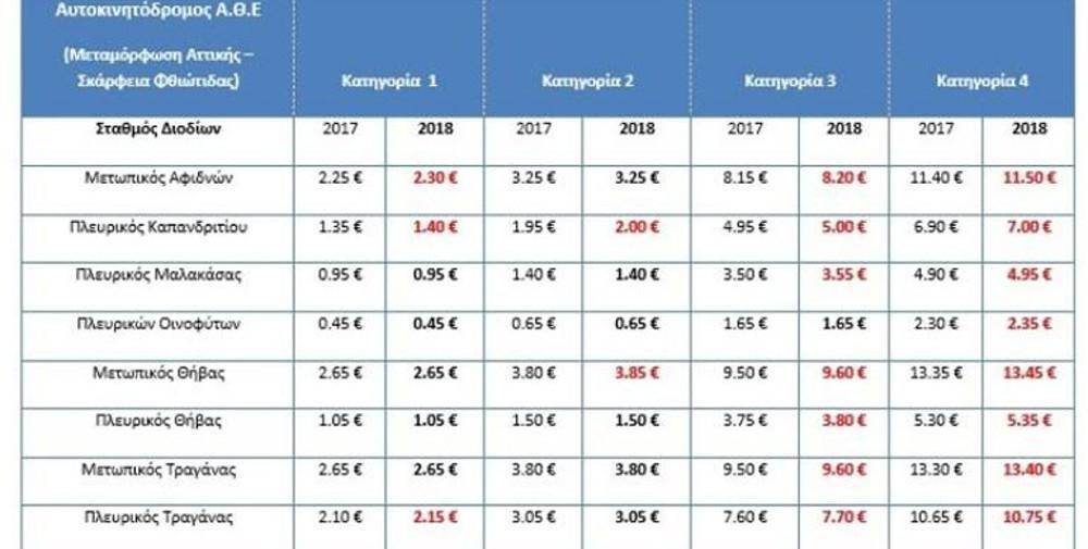 Οι νέες τιμές που θα ισχύσουν αποτυπώνονται στους παρακάτω πίνακες της Νέας Οδού.