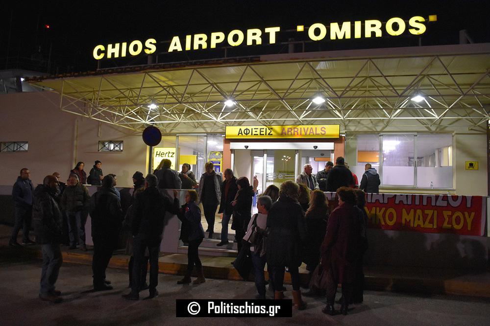 Συγκεντρωμένοι κάτοικοι του Χαλκειούς, όπου είναι εγκατεστημένο το hotspot – και όχι μόνο – κατέλαβαν την αίθουσα αναχωρήσεων, υψώνοντας πανό και φωνάζοντας συνθήματα κατά του ίδιου ζητώντας την παραίτησή του.