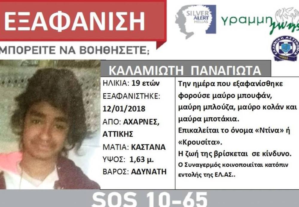 Σύμφωνα με τη Γραμμή Ζωής, η οποία εξέδωσε και Silver Alert, πρόκειται για την Παναγιώτα Καλαμιώτη.