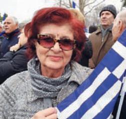 «Τελευταία στιγμή αποφάσισα να έρθω. Πρέπει να βάλουμε ένα φρένο στους γείτονες. Αν τους δώσουμε το όνομα, δεν θα μείνουν εκεί. Διαρκώς θα ζητούν κι άλλα. Είμαι τόσο συγκινημένη, όσο και στο πρώτο συλλαλητήριο το 1992».