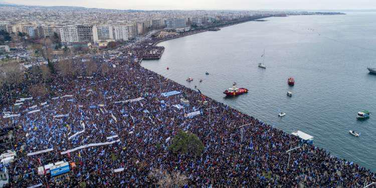 Από νωρίς χθες το πρωί, περίπου 300 λεωφορεία, μεταφέροντας συνολικά 15.000 άτομα, άρχισαν να φτάνουν στη Θεσσαλονίκη. Είχαν ξεκινήσει από την Κρήτη, την Πελοπόννησο, τις Κυκλάδες, τη Στερεά, την Ηπειρο, τα νησιά του Ιονίου, τη Θράκη και φυσικά από τη Μακεδονία. Ο κόσμος ξεκίνησε να συνωστίζεται απέναντι από την εξέδρα, η οποία είχε στηθεί κοντά στη Λεωφόρο Μεγάλου Αλεξάνδρου, στο ύψος του αγάλματος του Μακεδόνα στρατηλάτη και είχε «μέτωπο» προς τον Θερμαϊκό Κόλπο. Η πλατεία γέμισε ασφυκτικά και ο κόσμος άρχισε να αναπτύσσεται εκατέρωθεν. Ηταν πυκνή η συμμετοχή έως την πλατεία του Λευκού Πύργου και έως το Μακεδονία Παλάς. Από εκεί και πέρα, ο κόσμος αραίωνε αρκετά. Δηλαδή, από το Μακεδονία Παλάς έως τους Ομίλους ήταν άνετη η διάβαση ενώ το ίδιο συνέβαινε και από τον Λευκό Πύργο έως το λιμάνι, όπου είχαν σταθμεύσει τα περισσότερα από τα λεωφορεία.