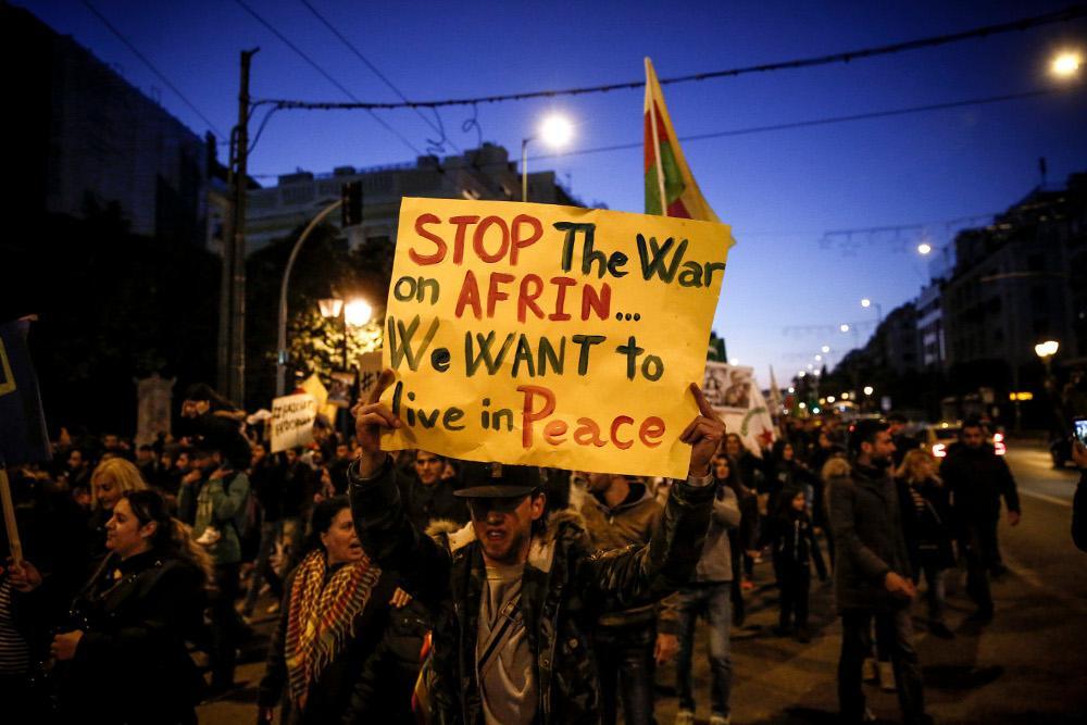 Η πορεία που ξεκίνησαν οι Κούρδοι είχε κατεύθυνση την τουρκική πρεσβεία αλλά κλούβες της αστυνομίας έκλεισαν την οδό Ριγήλλης στο ύψος της ΛΑΕΔ (Λέσχη Αξιωματικών Ενόπλων Δυνάμεων). Έτσι οι διαδηλωτές βρίσκονται στο Σύνταγμα.