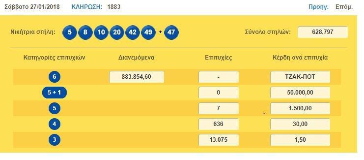 Οι τυχεροί αριθμοί είναι: 5,8,10,20,42,49