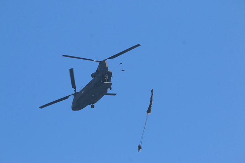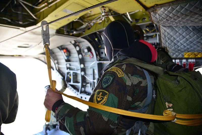 Ακολούθως, ο Αρχηγός ΓΕΕΘΑ συμμετείχε σε προγραμματισμένα άλματα στατικού ιμάντα από ελικόπτερο Σινούκ στην θαλάσσια περιοχή Νέας Περάμου και νήσου Φλεβών, καθώς και σε επιχειρησιακή κατάδυση.