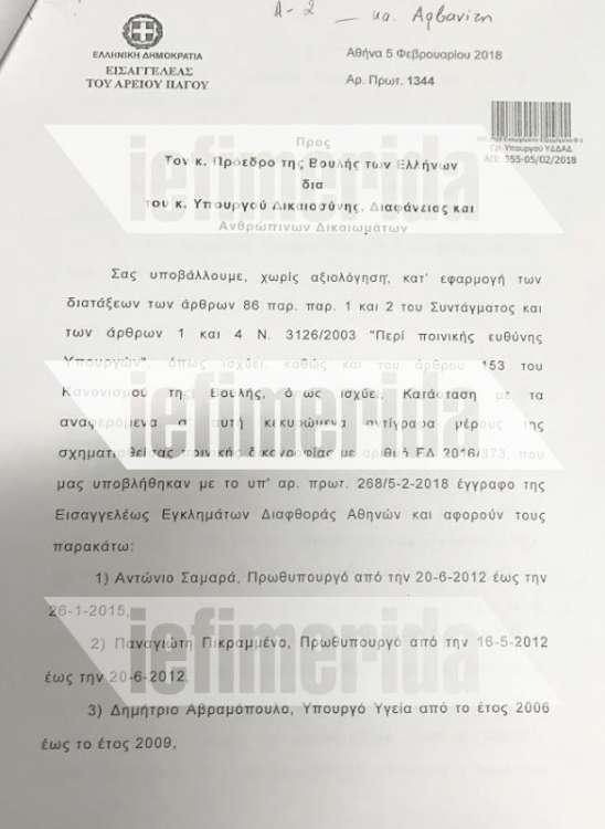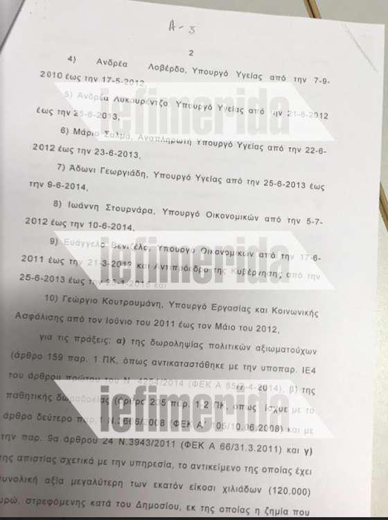 Πληροφορίες αναφέρουν ότι πρώτοι έλαβαν αντίγραφο της επίμαχης δικογραφίας ο πρώην πρωθυπουργός Αντώνης Σαμαράς, ο Ευάγγελος Βενιζέλος και ο Δημήτρης Αβραμόπουλος.