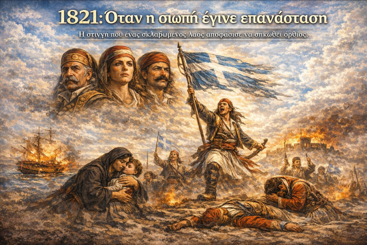 Το 1821 δεν ήταν απλώς μια επανάσταση. Ήταν μια κραυγή. Μια κραυγή που ωρίμαζε για αιώνες μέσα σε σκλαβωμένα χωριά, σε κρυφά σχολειά, σε μοναστήρια που φύλαγαν όχι μόνο πίστη αλλά και μνήμη. Τετρακόσια χρόνια οι Έλληνες ζούσαν κάτω από τον οθωμανικό ζυγό. Τετρακόσια χρόνια υπομονής, φόβου, αλλά και πείσματος.