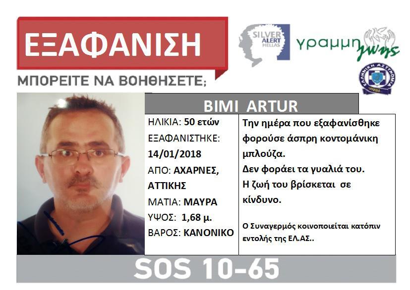 Την ημέρα που εξαφανίστηκε φορούσε άσπρη κοντομάνικη μπλούζα και δεν είχε μαζί του τα γυαλιά μυωπίας του. Η ζωή του βρίσκεται σε κίνδυνο και ο συναγερμός κοινοποιείται κατόπιν εντολής της ΕΛ.ΑΣ.