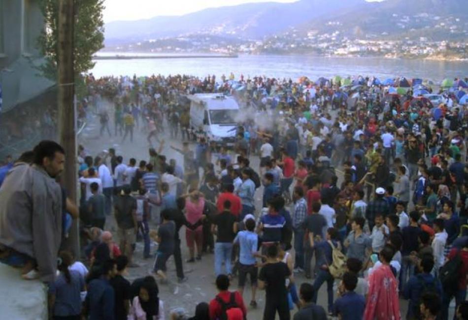 Δυστυχώς, πριν προλάβει καν να εξηγήσει στους μετανάστες την κατάσταση, ο αστυνομικός διευθυντής δέχτηκε επίθεση από ολιγομελή ομάδα μεταναστών με αποτέλεσμα να εμπλακούν στα επεισόδια και κάτοικοι του νησιού καθώς .Οι άνδρες των ΜΑΤ κατάφεραν να επιβάλουν την τάξη και οι μετανάστες οδηγηθήκαν στη συνέχεια στις εγκαταστάσεις των Λέπιδων