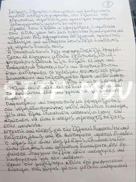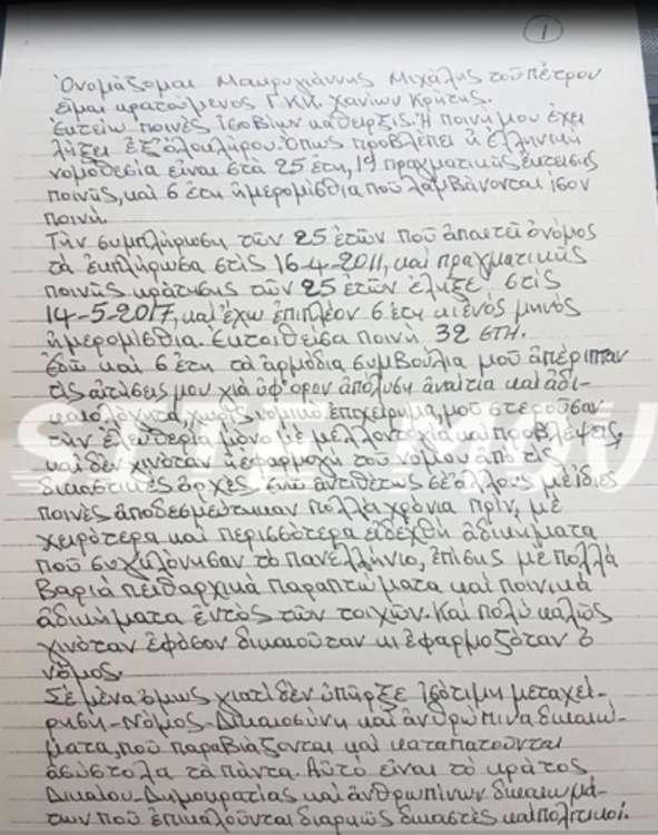 Ο Μιχάλης Μακρυγιάννης μέσα απο την επιστολή του ζητά απο την ελληνική δικαιοσύνη να πράξει αυτά που επιτάσσει το ελληνικό δίκαιο να αφεθεί ελεύθερος αφού σύμφωνα με τα δικαστικά έγγραφα, κρατείται παράνομα στις φυλακές Χανίων απο έχει εκτίσει παραπάνω απο τα 25 έτη κάτι το οποίο σημαίνει κατάφωρη καταπάτηση των ανθρωπίνων δικαιωμάτων.