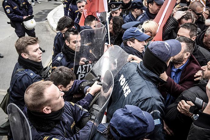 Ωστόσο, αστυνομικοί τους εμπόδισαν μπροστά στην είσοδο και εκεί δημιουργήθηκε μικροένταση, με τους εργαζομένους να αποδοκιμάζουν τους αστυνομικούς.