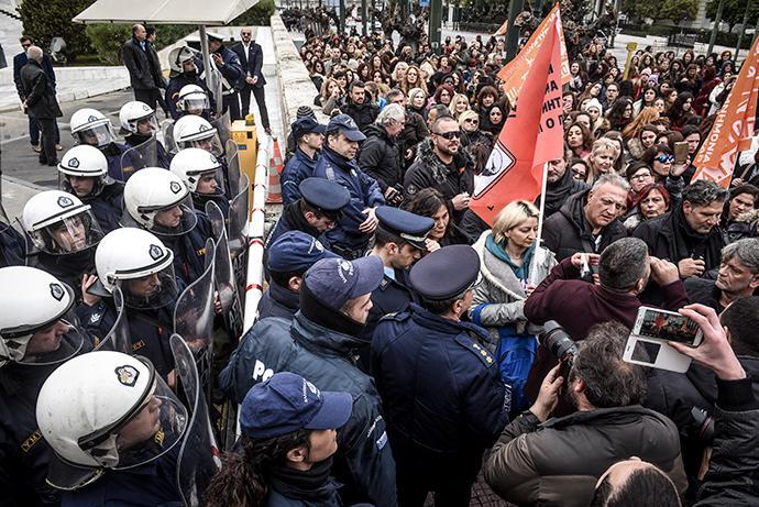 Οι εργαζόμενοι θέλησαν να εισέλθουν στο κτίριο της Βουλής προκειμένου να συναντήσουν τον υπουργό Παιδείας Κώστα Γαβρόγλου, καθώς είχε προηγηθεί η άκαρπη συνάντησή τους με τον υπουργό Εσωτερικών, Πάνο Σκουρλέτη.