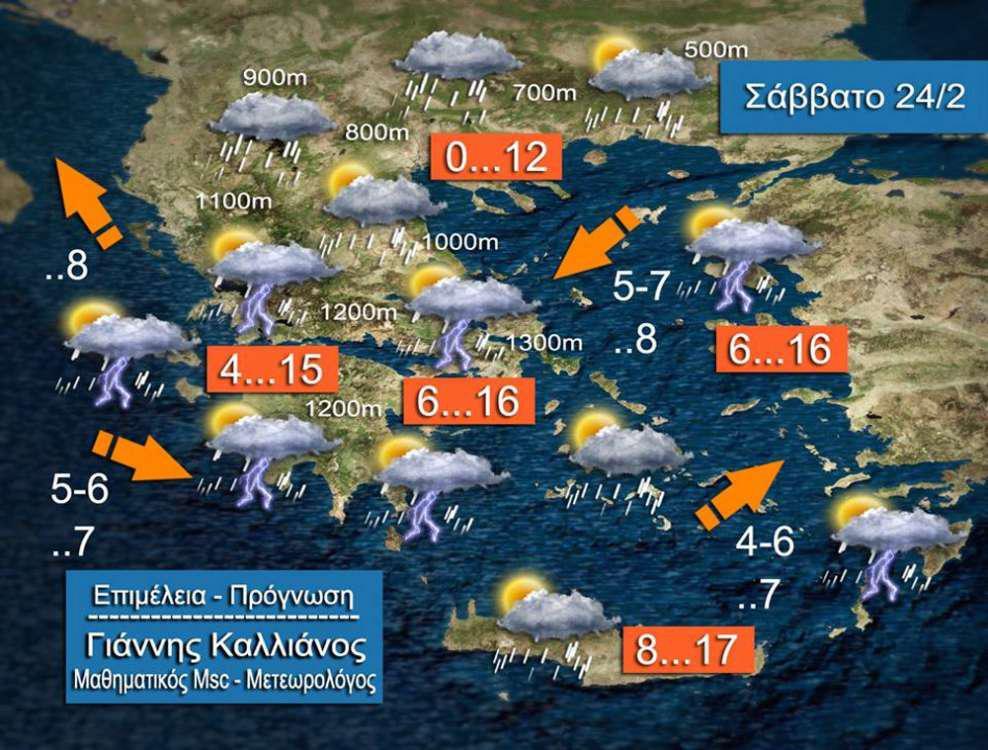 Το Σάββατο κατά διαστήματα θα επικρατήσει πολύ άστατος καιρός, τόσο στο Ιόνιο, όσο και στα ηπειρωτικά τμήματα αλλά και στις περισσότερες περιοχές του Αιγαίου.