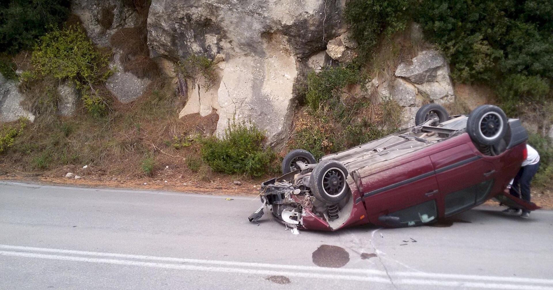 Κάτω από αδιευκρίνιστες συνθήκες, ο οδηγός έχασε τον έλεγχο του οχήματός του, με αποτέλεσμα το αυτοκίνητο να ντελαπάρει στη μέση του δρόμου.