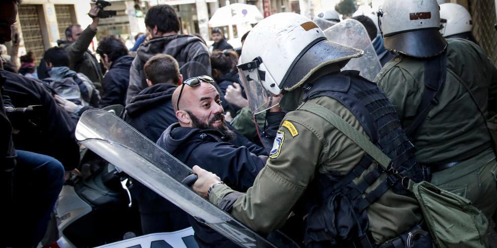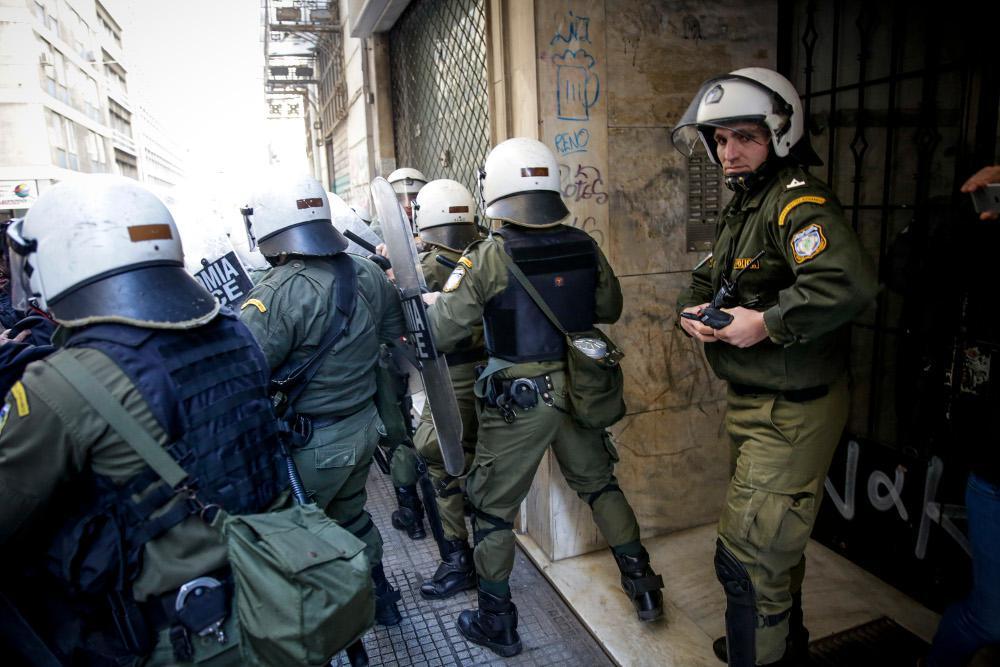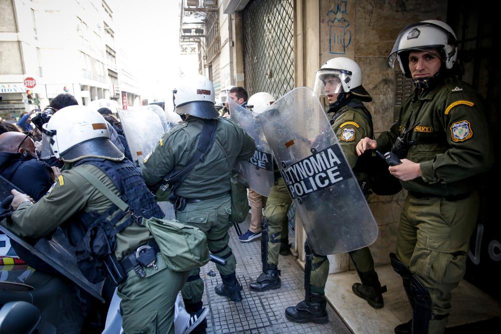 Μέλη του ΠΑΜΕ συγκεντρώθηκαν στο σημείο, ενώ δημιουργήθηκε ένταση και σπρωξίματα με τις αστυνομικές δυνάμεις που έκαναν ρίψη χημικών για να διαλύσουν τους διαδηλωτές.