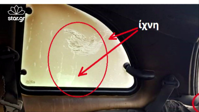 Στη φωτογραφία αυτή φαίνεται ξεκάθαρα το σημάδι από το παπούτσι της 44χρονης στο τζάμι πίσω από τη θέση του συνοδηγού που αναφέρει στο πόρισμά του και ο πρώην υπαρχηγός της Πυροσβεστικής Ανδριανός Γκουρμπάτσης, ο οποίος μιλά ξεκάθαρα για σκηνοθετημένη αυτοχειρία που στο βάθος υποκρύπτεται εγκληματική ενέργεια.