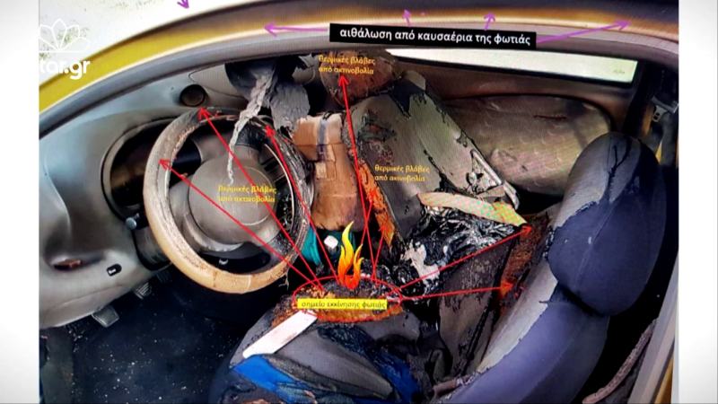 Εντύπωση επίσης προκαλεί το γεγονός ότι όπως αποκάλυψε ο δικηγόρος της οικογένειας, το μπιτόνι το οποίο περιείχε πετρέλαιο και βρέθηκε στη θέση του συνοδηγού ήταν άθικτο, χωρίς καμία αλλοίωση από τη φωτιά, όπως επίσης και μια πλαστική λεκάνη.