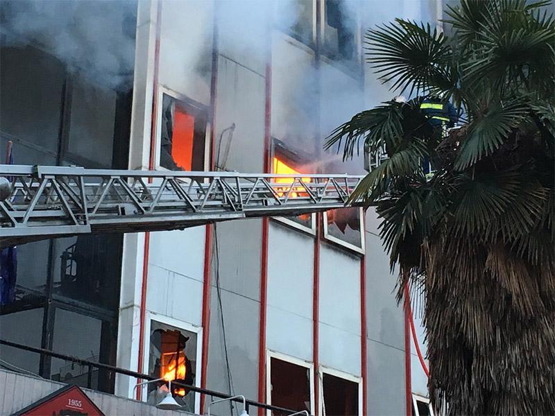 Όπως ανέφερε ο ΣΚΑΪ οι φλόγες ηταν ορατές στον ημιώροφο, τον 1ο και τον 2ο όροφο, ενώ στο ισόγειο του κτιρίου στεγάζονται δύο καταστήματα υγειονομικού ενδιαφέροντος.