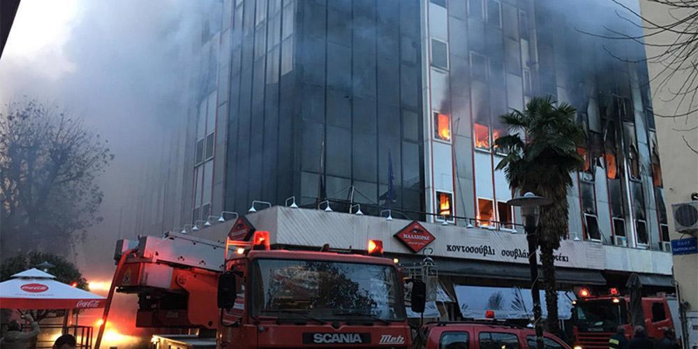Από την πυρκαγιά προκλήθηκαν εκτενείς υλικές ζημιές στην Β’ ΔΟΥ Λάρισας και σε γραφεία επιχειρήσεων.