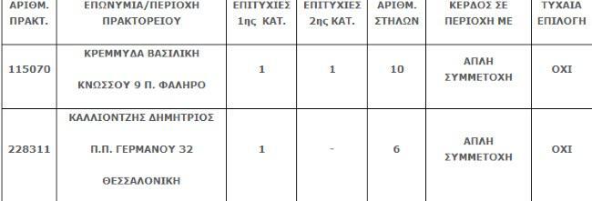 Τα χρυσά δελτία κατατέθηκαν στη Θεσσαλονίκη και στο Παλαιό Φάληρο της Αττικής. Στη Θεσσαλονίκη, το δελτίο κόστιζε 3 ευρώ και δεν ήταν τυχαίας επιλογής. Κατατέθηκε στο πρακτορείο του Δημήτρη Καλλιοντζή στην οδό Παλαιών Πατρών Γερμανού 32. Ο υπερτυχερός κέρδισε 408.195, 41 ευρώ.