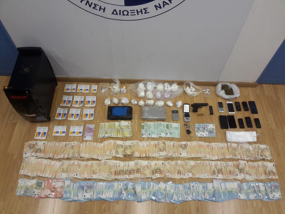 Κατασχέθηκαν -3.902- γραμμάρια κοκαΐνης, -64- γραμμάρια ακατέργαστης κάνναβης, το χρηματικό ποσό των -144.530- ευρώ, ένα (1) πιστόλι, φυσίγγια κ.λπ.