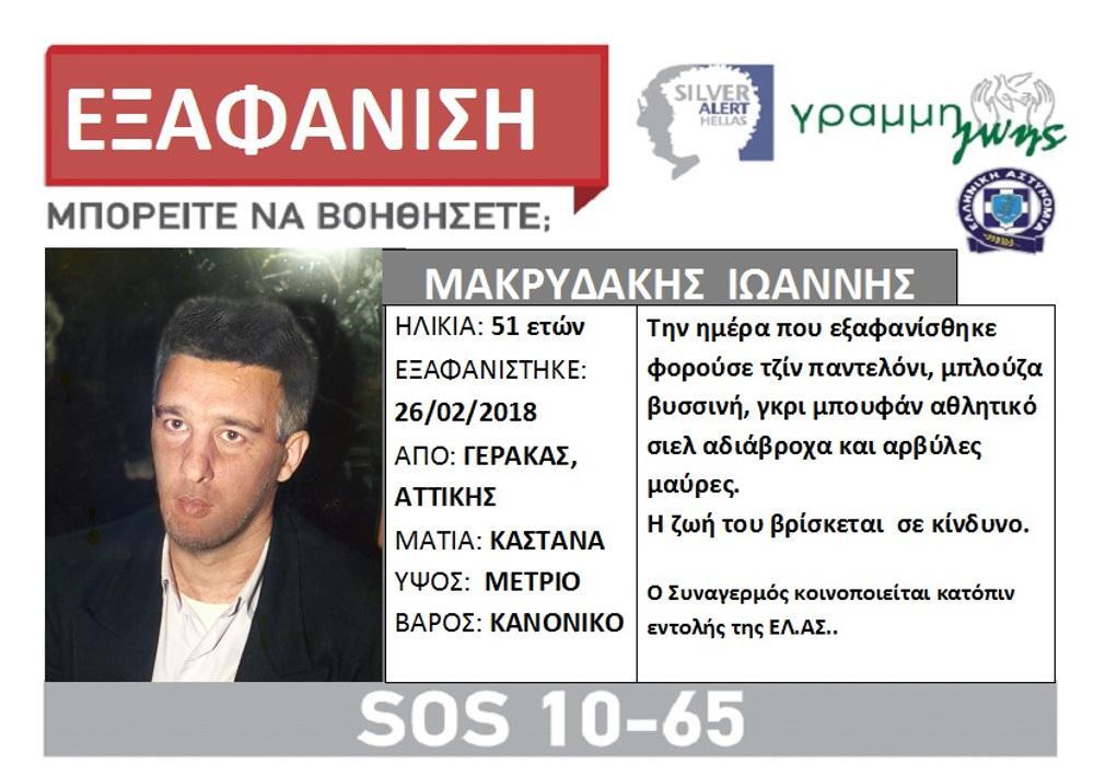 Η ζωή του βρίσκεται σε κίνδυνο και ο συναγερμός κοινοποιείται κατόπιν εντολής της ΕΛ.ΑΣ.
