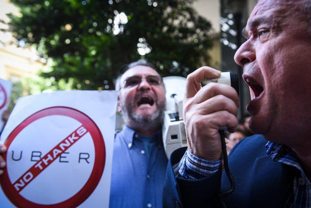 Σύμφωνα με ανακοίνωση του Συνδικάτου Αυτοκινητιστών Ταξί Αττικής (ΣΑΤΑ), οι οδηγοί ταξί δηλώνουν την αντίθεσή τους στην «παράνομη και αυθαίρετη εισβολή της Uber στις επιβατικές μεταφορές» κάνοντας λόγο «για υποκλοπή του έργου», «στην κάθε καινοτομία – πλατφόρμα που κλέβει τον ταξιτζή και τη χώρα μας» ενώ καταγγέλλουν όλους όσους μέχρι σήμερα φρέναραν το νομοσχέδιο που ήδη βρίσκεται στη Βουλή και αφορά τα ταξί.