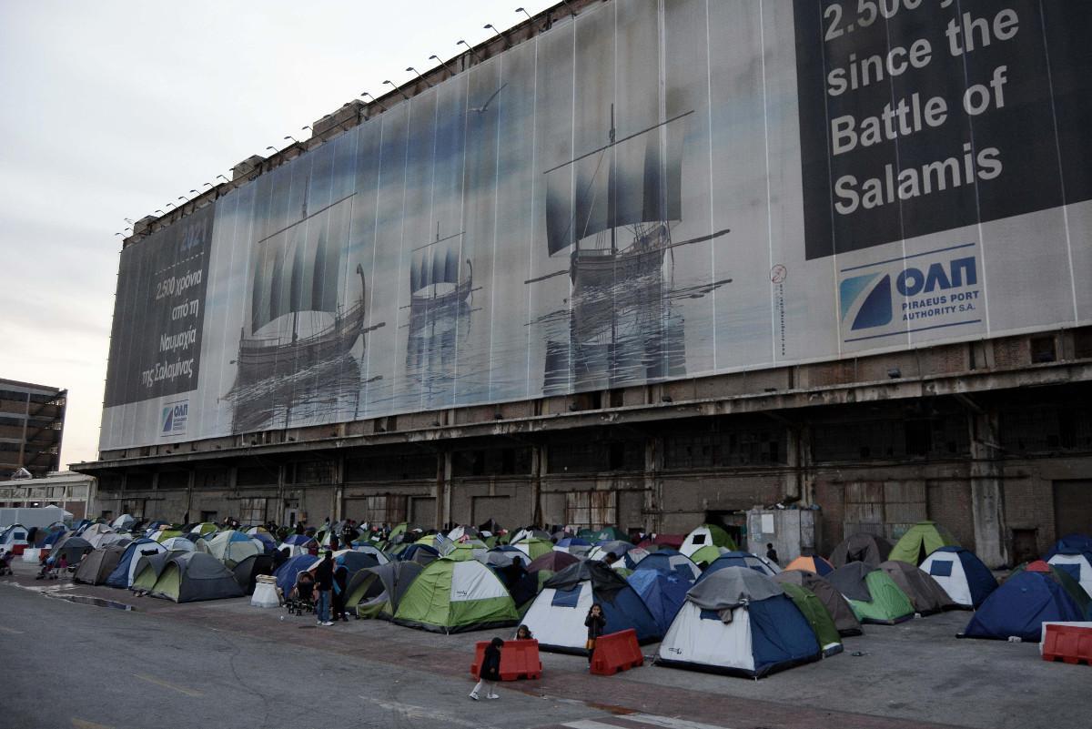 Οι μετανάστες που διέμεναν στον συγκεκριμένο χώρο μεταφέρθηκαν και αυτοί κάτω από το στέγαστρο περιμετρικά του λιμανιού.