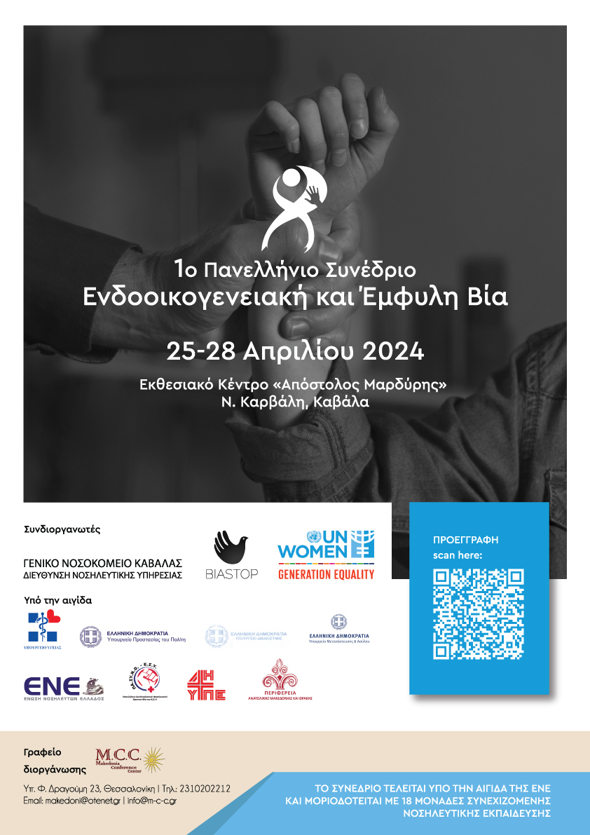 Το 1ο Πανελλήνιο Συνέδριο για την Ενδοοικογενειακή και Έμφυλη Βία θα διεξαχθεί με φυσική παρουσία αλλά και με ταυτόχρονη διαδικτυακή μετάδοση των Εργασιών αποκλειστικά της Κεντρικής Συνεδριακής αίθουσας.