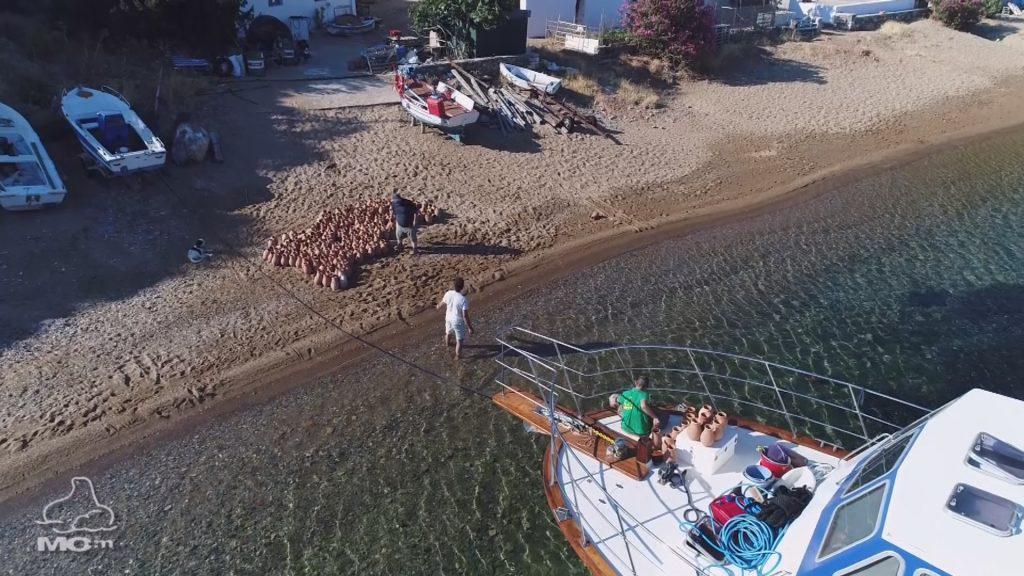Τα πήλινα αγγεία κατασκευάσθηκαν στο παραδοσιακό εργαστήριο της οικογένειας Ατσόνιου στο Βαθύ της Σίφνου και μεταφέρθηκαν κατευθείαν στη Γυάρο, όπου οι επιστήμονες τα έριξαν στη θάλασσα.