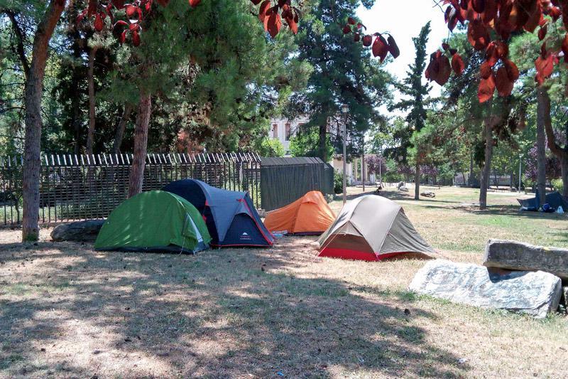 Σύμφωνα με τη μέχρι στιγμής πληροφόρηση που έχει η επιτροπή (την οποία εκτός από τον κ. Λαόπουλο συνθέτουν οι κοσμήτορες της Θεολογικής, καθηγητής Μιλτιάδης Κωνσταντίνου, της Φιλοσοφικής, καθηγητής Δήμητρης Μαυροσκούφης, της Νομικής, καθηγητής Γιώργος Δέλλιος και Θετικών Επιστημών, καθηγητής Χαρίτων Χιντήρογλου) οι κατασκηνωτές κατέλαβαν το κτίριο της Νομικής για να έχουν πρόσβαση σε εγκαταστάσεις και τουαλέτες που μπορούν να χρησιμοποιήσουν. Καθηγητές ή φοιτητές δεν βρίσκονται εντός του κτιρίου, ενώ κάποιος εξοπλισμός αξίας απομακρύνθηκε προληπτικά, ήδη από τις προηγούμενες ημέρες.