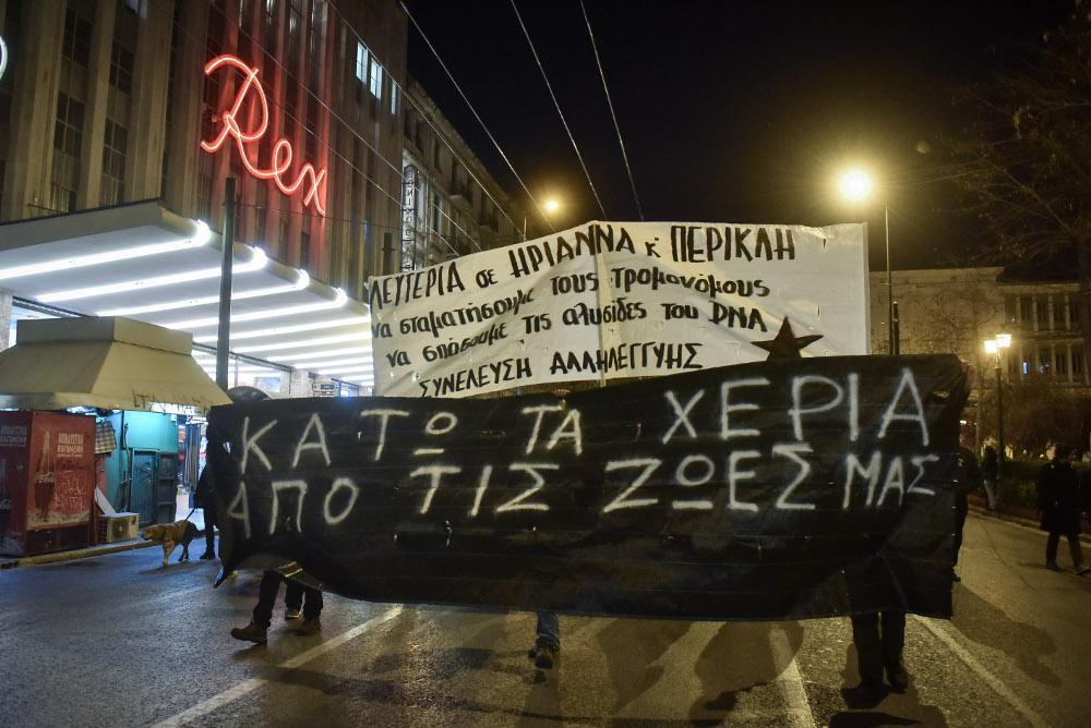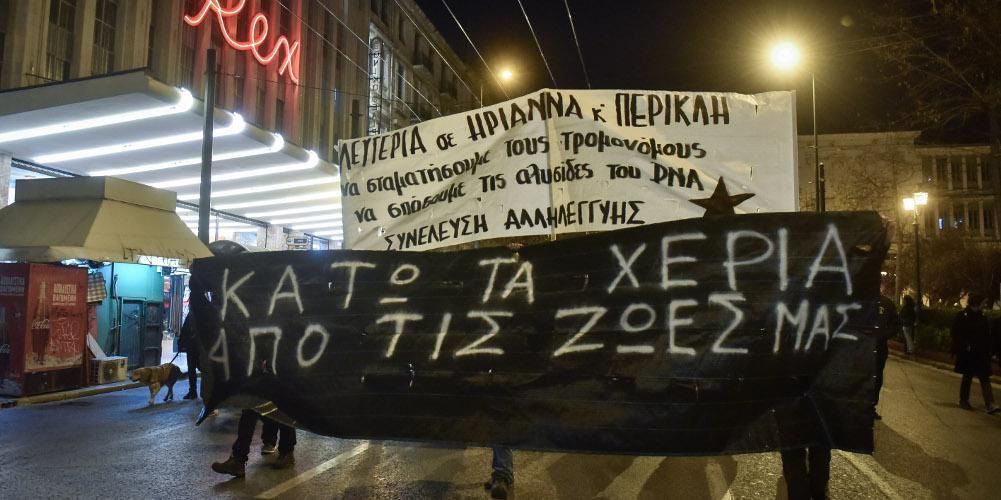 Με κεντρικό σύνθημα «Κάτω τα χέρια από τις ζωές μας», οργανώσεις της Αριστεράς και συλλογικότητες του αντιεξουσιαστικού χώρου διαδηλώνουν εκφράζοντας την αλληλεγγύη στους δύο κρατούμενους ενόψει της τρίτης εκδίκασης της αίτησης αναστολής της εκτέλεσης ποινής τους που θα πραγματοποιηθεί στις 21 Μαρτίου στο Εφετείο.