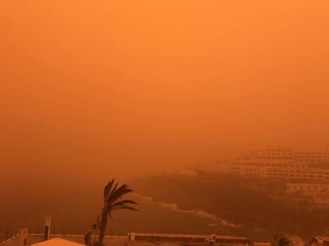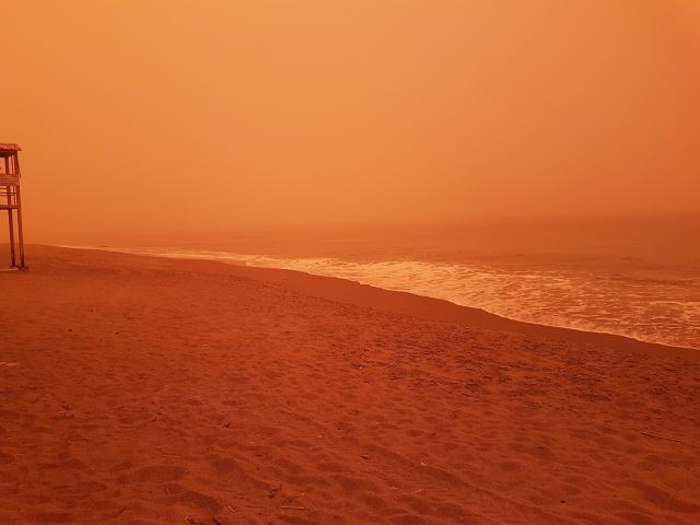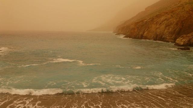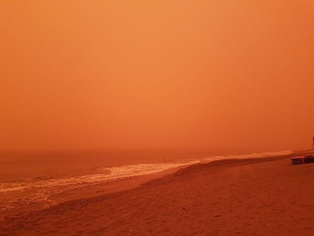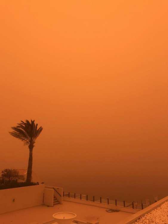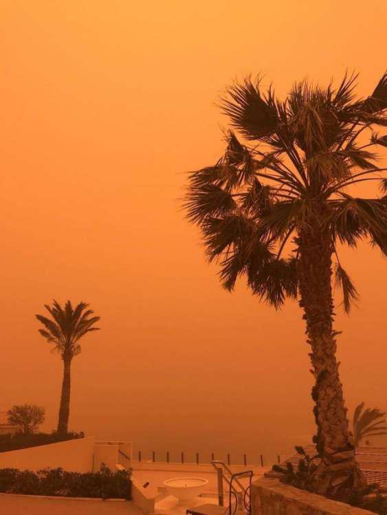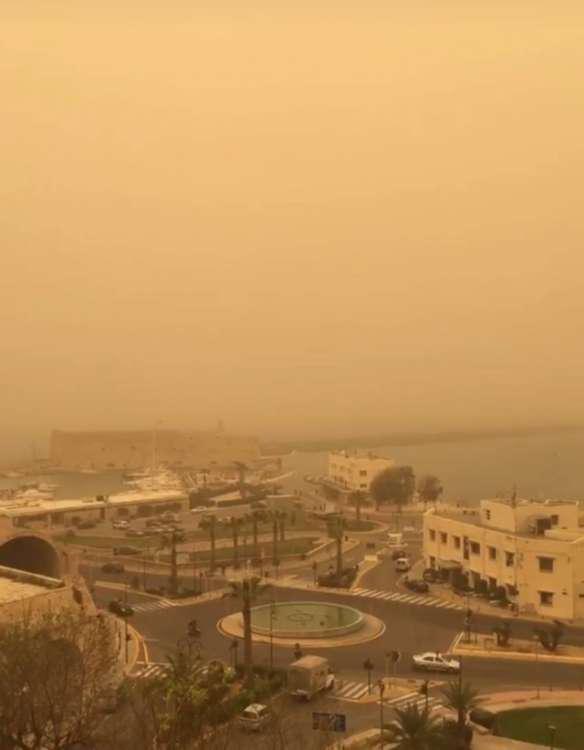 Την ίδια ώρα ο ουρανός έχει πάρει ένα σπάνιο χρώμα που συναντούμε μόνο την ώρα που δύει ο ήλιος. Χαρακτηριστικές είναι οι φωτογραφίες που έχει συλλέξει το ekriti.gr τόσο από το διαδίκτυο όσο από δικό του υλικό.