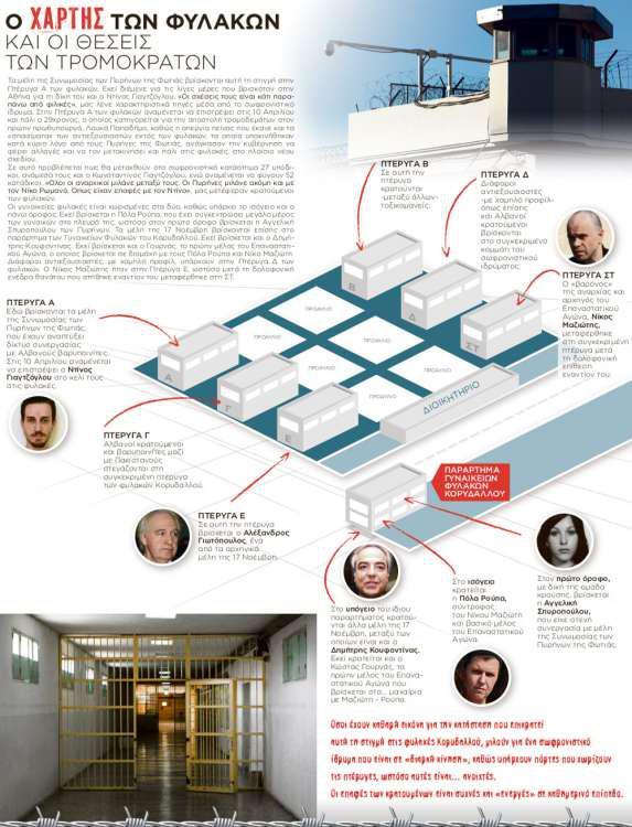 «Ο Ντίνος θεωρείται το παιδί των “Πυρήνων” που προσπάθησαν να τον φέρουν στον Κορυδαλλό όχι μόνο για να είναι κοντά στην οικογένειά του. Τον έφεραν για να είναι κοντά τους, καθώς είναι ένα πρόσωπο με μεγάλη επιρροή στον έξω από τις φυλακές αντιεξουσιαστικό κόσμο. Είναι στη σφαίρα επιρροής τους», αποκαλύπτει στον Ελεύθερο Τύπο της Κυριακής ασφαλής πηγή μέσα από τις φυλακές Κορυδαλλού, που γνωρίζει καλά πρόσωπα και καταστάσεις.