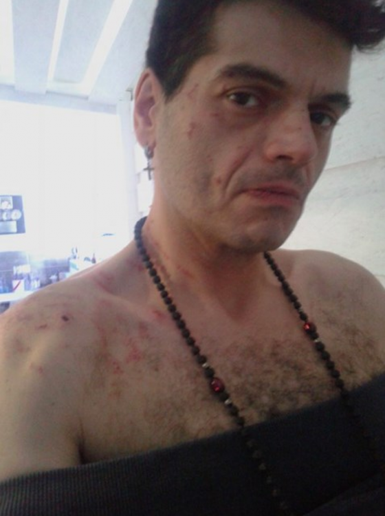 Όπως θα δείτε στις παρακάτω φωτογραφίες του Nassos Blog o τραγουδιστής φέρει τραύματα και πληγές στο σώμα του από την επίθεση.