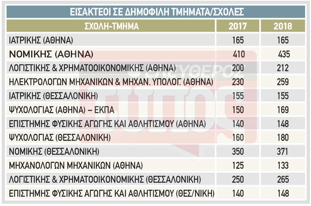 Ο Ελεύθερος Τύπος παρουσιάζει αναλυτικά τον αριθμό εισακτέων βάσει των επιστημονικών πεδίων με τις πρώτες εκτιμήσεις για τις βάσεις, σύμφωνα με το ύψος της αύξησης.