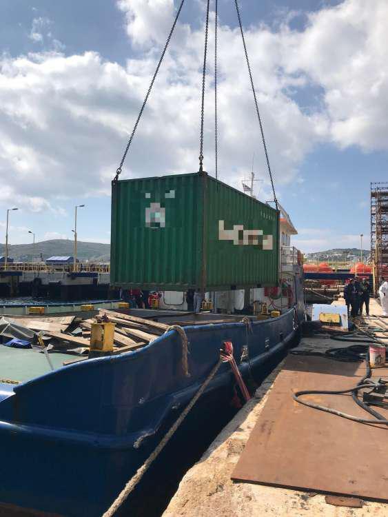 Το Daslis οδηγήθηκε χθες στα ναυπηγεία του Νεωρίου, προκειμένου με τη χρήση γερανού και τη συνδρομή εργαζομένων του ναυπηγείου να ξεφορτωθούν τα τέσσερα κοντέινερ που είχε πάνω του.