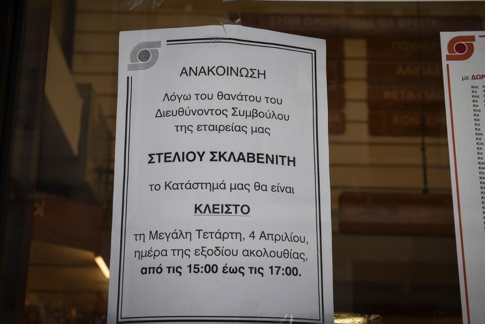 Τα καταστήματα Σκλαβενίτης και ΜΑΡΤ ΚΑΣ ΚΑΙ ΚΑΡΥ στο Νομό Αττικής θα παραμείνουν κλειστά από 15:00 έως 17:00 κατά τη διάρκεια της εξοδίου ακολουθίας.