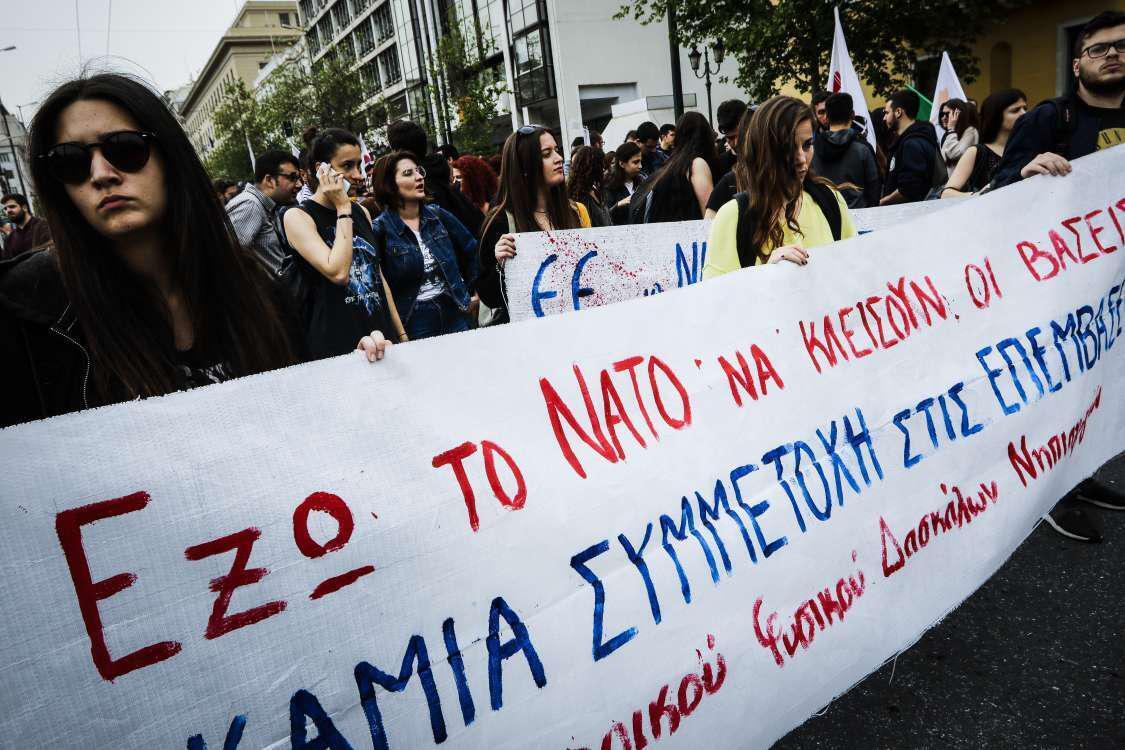 Φοιτητές και μαθητές ζητούν να κλείσουν οι βάσεις του ΝΑΤΟ, καθώς επίσης και να δοθούν πόροι στην εκπαίδευση, αντί στη Συμμαχία.