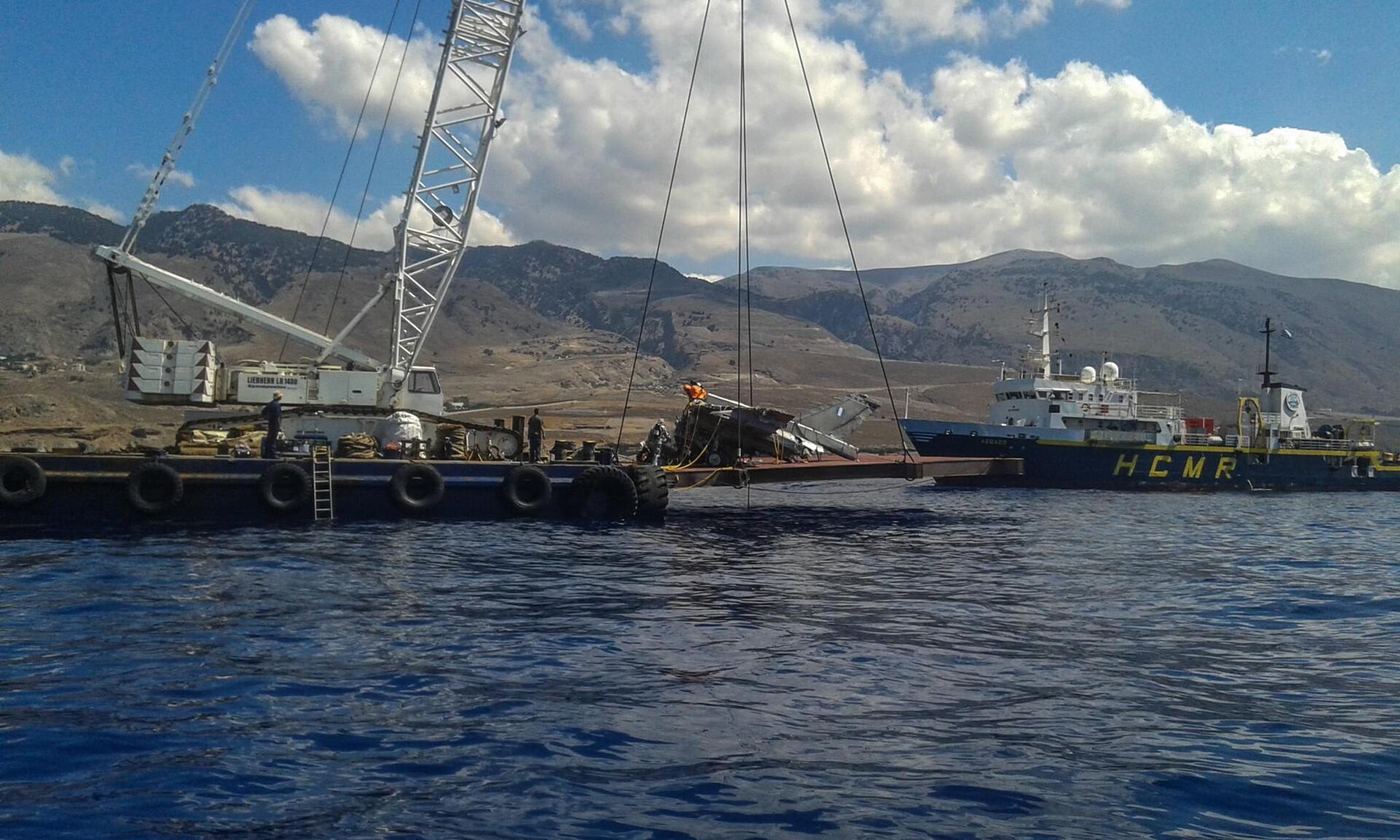 Στην επιχείρηση ανέλκυσης του αεροσκάφους, από βάθος περίπου χιλίων μέτρων (1000m), συμμετείχαν ομάδα εμπειρογνωμόνων της Επιτροπής Διερεύνησης του Αεροπορικού Ατυχήματος της Πολεμικής Αεροπορίας (ΠΑ), δύτες της Κινητής Ομάδας Συντήρησης Υποβρύχιων και Θαλάσσιων Εγκαταστάσεων (ΚΟΣΥΘΕ) της ΠΑ και ερευνητικό προσωπικό του Ελληνικού Κέντρου Θαλάσσιας Έρευνας (ΕΛΚΕΘΕ), το οποίο είχε και την ευθύνη υλοποίησης της ανέλκυσης.