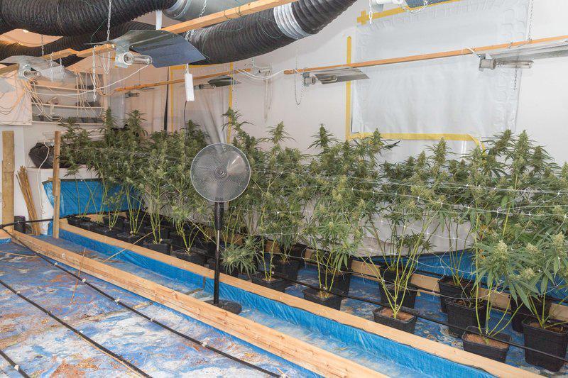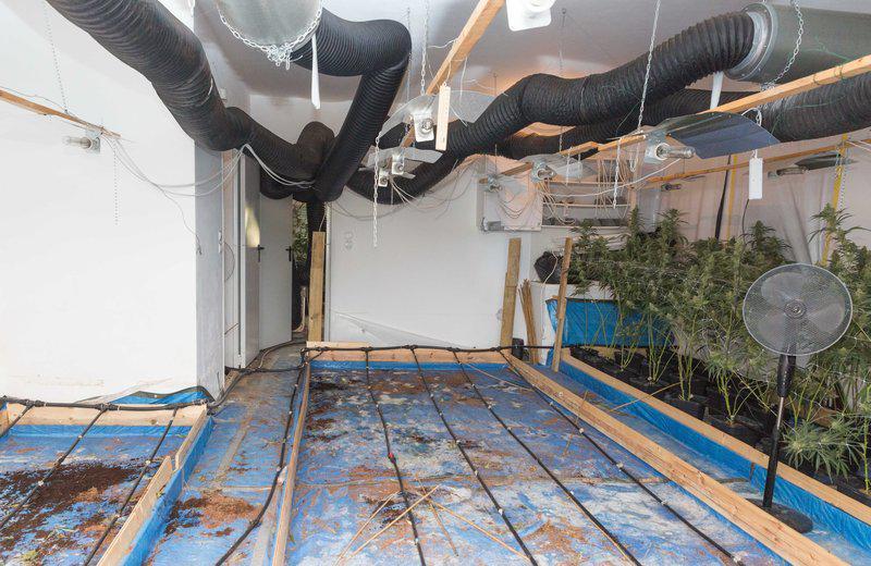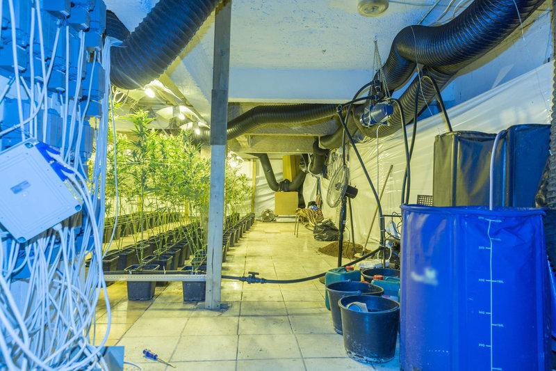 - στην 1η οικία στη Νοτιοανατολική Αττική, η εγκατάσταση και λειτουργία πλήρως εξοπλισμένου εργαστηρίου – φυτωρίου (155) δενδρυλλίων κάνναβης σε πλαστικές γλάστρες, δια της υδροπονικής μεθόδου, ύψους περίπου 50 cm έως 1,5 m , πάνω από 2,5 κιλά ακατέργαστης κάνναβης, 200 γραμμάρια επεξεργασμένης κάνναβης σε κρυσταλλική μορφή και πάνω από 13 κιλά φύλλων κάνναβης.