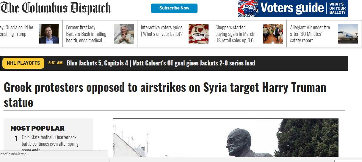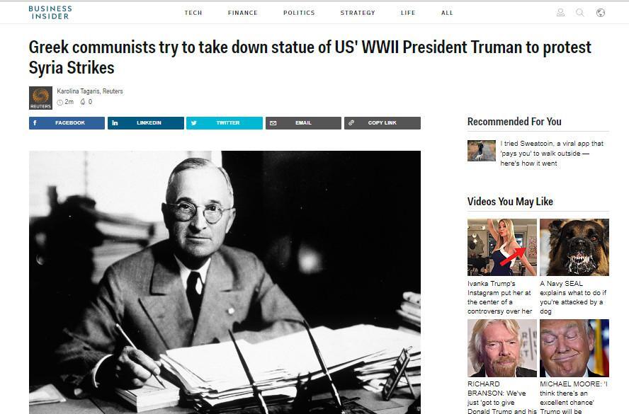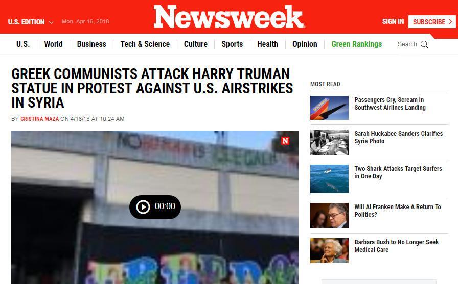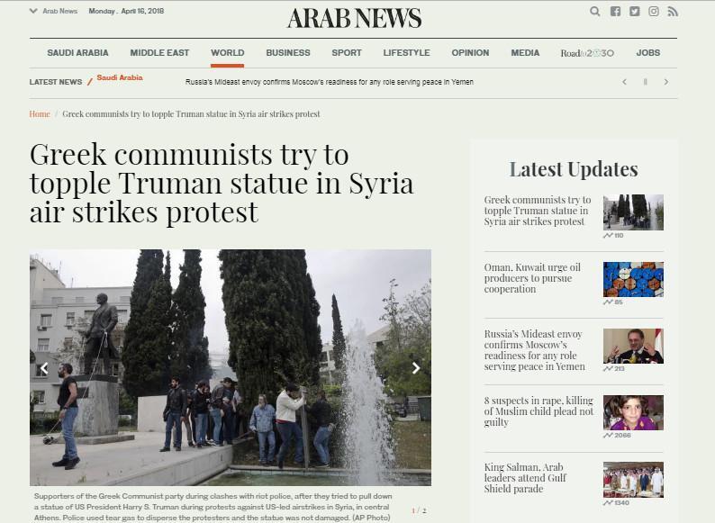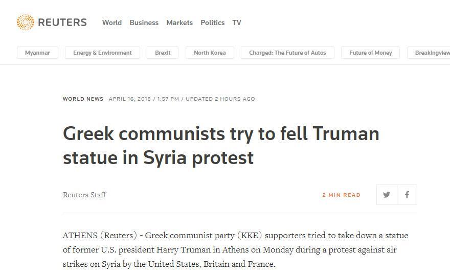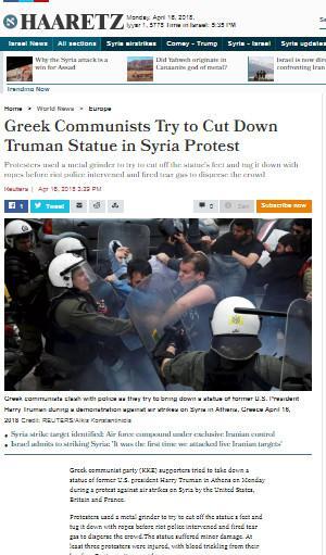 Η είδηση έκανε τον γύρο του κόσμου. Μέσα ενημέρωσης από την Ασία, την Αμερική και την Ευρώπη αναφέρονται στο περιστατικό με τίτλους όπως «Έλληνες κομμουνιστές επιχείρησαν να ανατρέψουν το άγαλμα του Τρούμαν», «Έλληνες κομμουνιστές επιτέθηκαν στο άγαλμα του Τρούμαν», «Έλληνες κομμουνιστές προσπάθησαν να καταστρέψουν το άγαλμα του Τρούμαν».