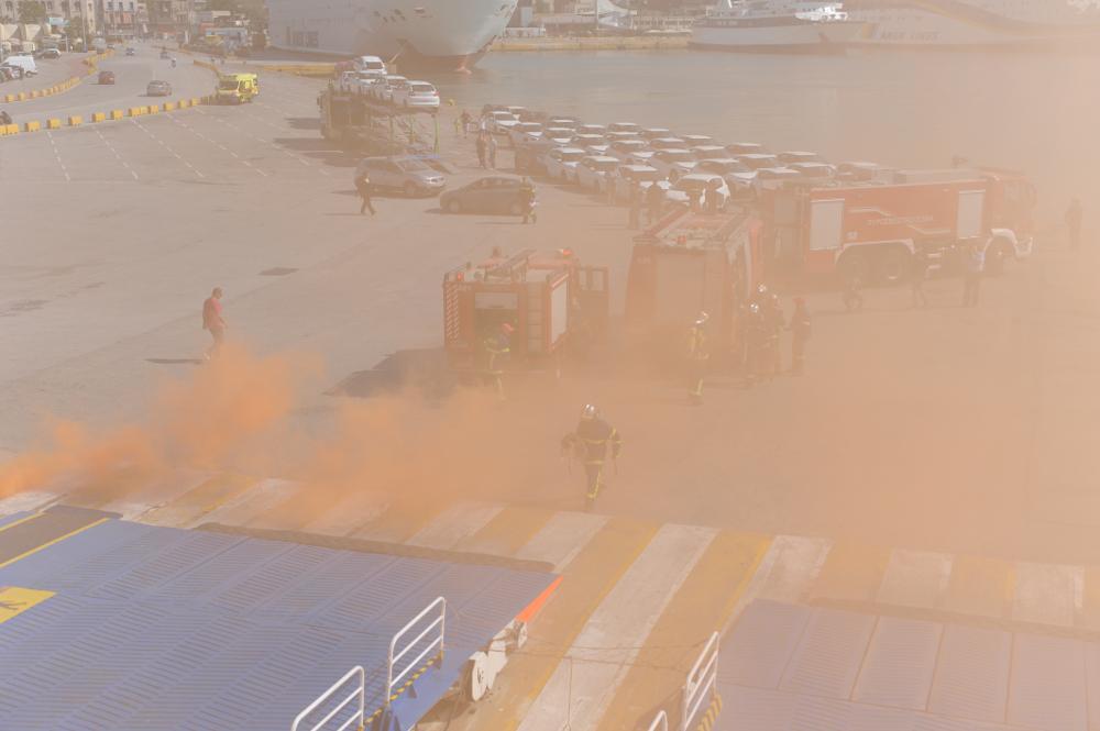 Επρόκειτο για Άσκηση Ετοιμότητας του 5ου Πυροσβεστικού Σταθμού Λιμένα Πειραιά, η οποία αφορούσε στην εκδήλωση πυρκαγιάς στο Ε/Γ-Ο/Γ FESTOS – KNOSSOS PALACE. Σύμφωνα με το σενάριο, στο πλοίο που είναι πλαγιοδετημένο στην Ηετιώνεια Ακτή, στον Κεντρικό Λιμένα Πειραιά, ξέσπασε πυρκαγιά στο κύριο χώρο οχημάτων (GARAGE), από το σημείο λήψης καυσίμων και επεκτάθηκε στα παρακείμενα οχήματα. Στο χώρο έχει εγκλωβιστεί ένα μέλος του πληρώματος και υπάρχει ακόμη ένας άνθρωπος, μέλος του πληρώματος, στη θάλασσα πλησίον του πρυμναίου μέρους του πλοίου.