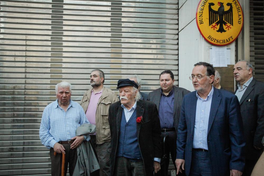 Οι διαδηλωτές αφού συγκεντρώθηκαν στο άγαλμα του ‘Αγνωστου Στρατιώτη, κατευθύνθηκαν προς τη γερμανική πρεσβεία ζητώντας συνάντηση με τον πρέσβη προκειμένου να του επιδώσουν ψήφισμα. Ωστόσο, αυτό δεν κατέστη δυνατό, διότι ο πρέσβης, όπως τους ενημέρωσαν απουσίαζε με αποτέλεσμα να θυροκολλήσουν το ψήφισμα.