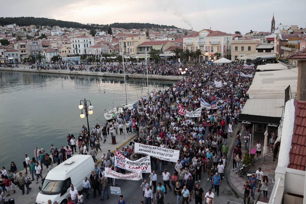 Κάτοικοι και φορείς της Λέσβου διαδήλωσαν από νωρίς το απόγευμα ζητώντας να βρεθεί άμεσα λύση στο μεταναστευτικό πρόβλημα και επιπλέον να μη γίνει καμία αύξηση στους μειωμένους συντελεστές του ΦΠΑ από το 17% που είναι μέχρι τις 30 Ιουνίου στο 24%.
